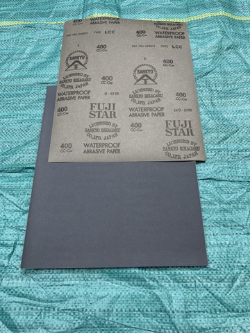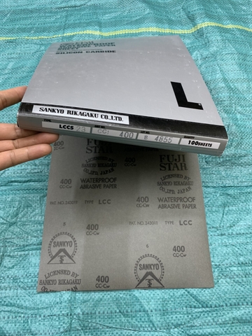 Giấy giáp mịn P400 Fujistar Sankyo, kích thước 9''x11'', chịu nước có hạt cát rất cứng và sắc nhằm tiết kiệm được sức lực và thời gian hoàn thiện sản phẩm . Có thể chà sản phẩm trong môi trường nước, chà khô hoặc chà kết hợp cả hai , bề mặt ẩm ướt nhưng vẫn đạt hiệu quả tốt đa, mài nhám sạch bóng, mịn cho bề mặt gỗ, kim loại, inox, nhựa..