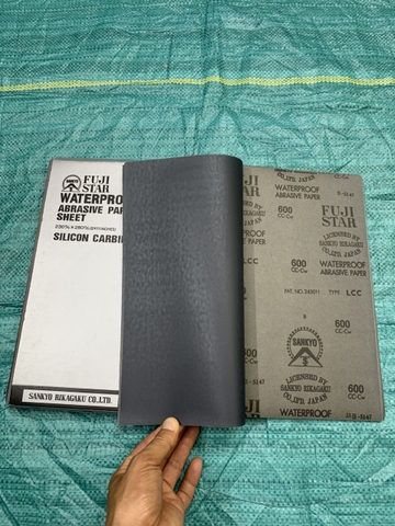 Giấy giáp mịn P600 Fujistar Sankyo, kích thước 9''x11'', chịu nước có hạt cát rất cứng và sắc nhằm tiết kiệm được sức lực và thời gian hoàn thiện sản phẩm . Có thể chà sản phẩm trong môi trường nước, chà khô hoặc chà kết hợp cả hai , bề mặt ẩm ướt nhưng vẫn đạt hiệu quả tốt đa, mài nhám sạch bóng, mịn cho bề mặt gỗ, kim loại, inox, nhựa..