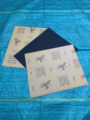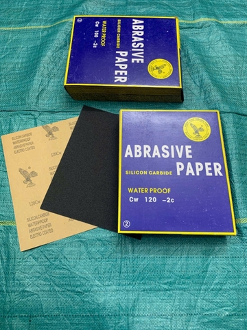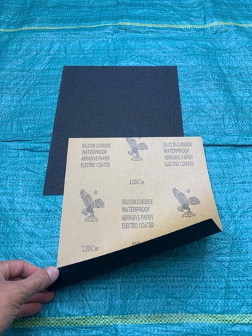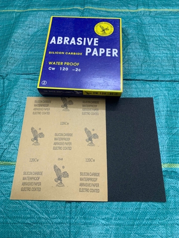Giấy giáp chịu nước, độ nhám P120, hãng Đại Bàng, kích thước 9''x11'' màu xám, sản phẩm được sản xuất tại nhà máy tại Hàn Quốc. Với chất lượng hạt cát Silicon Carbide có độ bền cao