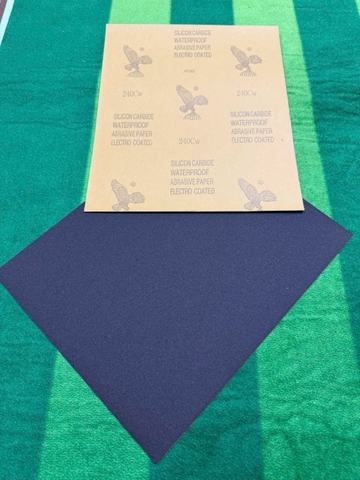_ Giấy nhám Đại Bàng P240 có thể nhúng vào nước sau đó dùng cho việc xử lý bóng, mịn cho bề mặt gỗ, kim loại, inox, nhựa…