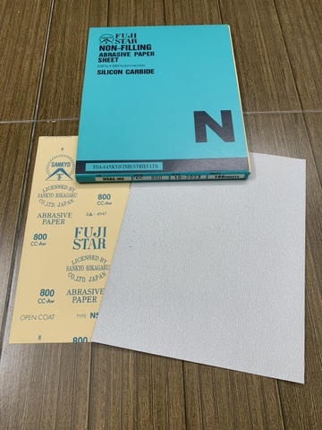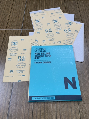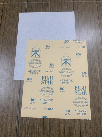 Giấy nhám khô P800 Fujistar Sankyo, kích thước 230mmx280mm, màu trắng là loại nhám mịn của hãng Sankyo, đây là loại nhám khô dùng để hoàn thiện bề mặt của vật liệu. Hoặc mài highlight trong ngành sơn ô tô, xe máy, linh kiện điện tử, nhựa..