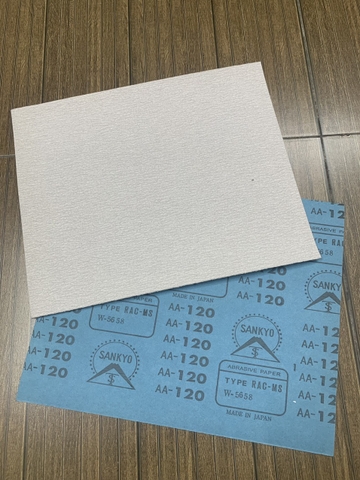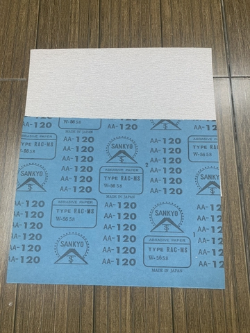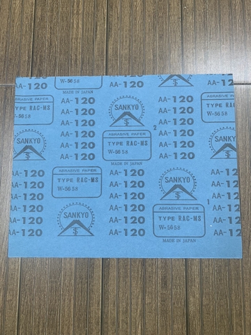 Giấy nhám nhật xanh Sankyo Fujistar, nhập khẩu nhật bản, kích thước 230mmx280mm, mặt giấy màu xanh, mặt nhám màu trắng là loại nhám của hãng Sankyo, đây là loại nhám khô dùng để mài và hoàn thiện bề mặt của vật liệu. Hoặc mài highlight trong ngành sơn ô tô, xe máy, linh kiện điện tử, nhựa...