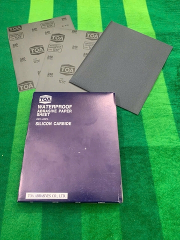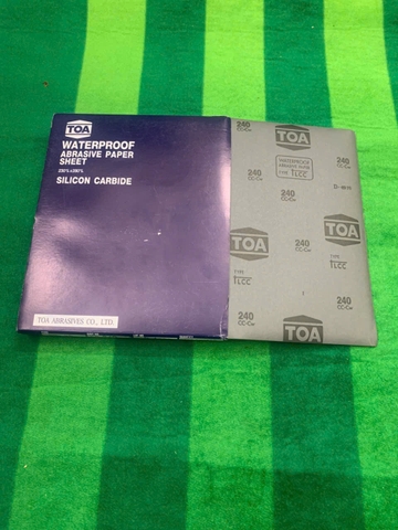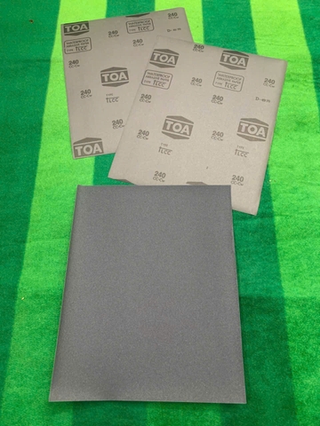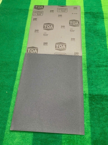 Giấy nhám nước TOA đen (TOA DCC Waterproof Abrasive Paper): Thường dùng để chà nhám ướt hoặc khô, chuyên dùng cho bề mặt kim loại, ô tô, cơ khí, đánh bóng bề mặt sản phẩm. Có độ hạt đa dạng (từ thô đến rất mịn, ví dụ: P80 đến P2000).