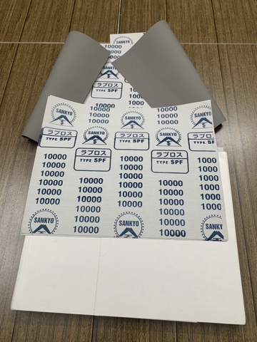 Giấy ráp siêu mịn, hãng Sankyo, độ nhám P10000, kích thước 230mmx280mm, nhập khẩu 100% từ Nhật Bản, hãng có khả năng mài sản phẩm cao cấp và giữ lại độ bóng, độ sáng trên bề mặt khi sản phẩm được đóng gói bằng băng dính, giấy bóng hay vật liệu khác.
