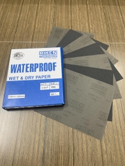 Giấy ráp thô P80 RIKEN CP35 9''x11'' chịu nước màu xám được cấu tạo từ các hạt cát (Thông dụng là cát Aluminium) với các kích cỡ, độ nhám khác nhau và được sắp xếptheo tỉ lệ nhất định trên bề mặt giấy, đáp ứng đầy đủ các yêu cầu mài mòn vật liệu