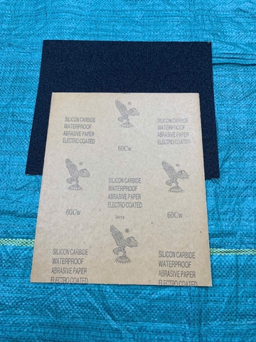 Công ty Nhất Gia là nhà phân phối, cung cấp tất cả các loại giấy ráp tờ thương hiệu Đại Bàng Hàn Quốc, độ nhám P60, kích thước là 230mmx280mm (9''x11''), có màu đen, hạt mài Silicon Carbide