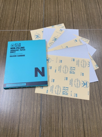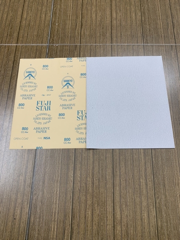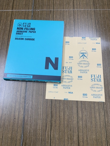 Giấy ráp tờ trắng khô P800, hãng Fujistar Sankyo, kích thước 9''x11'', sản phẩm được sản xuất tại nhà máy Sankyo, Japan. Với chất lượng hạt cát Silicon Carbide có độ bền cao