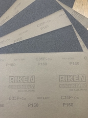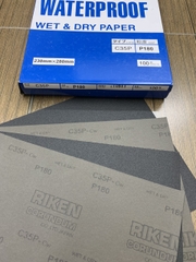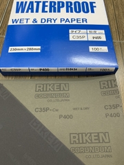 Nhám tờ RIKEN, mã sản phẩm CP35, kích thước 9''x11'', chuyên dùng cho việc xử lý thô hoặc mài phá bề mặt gỗ, kim loại, inox, nhựa, dùng được trong môi trường nước, bề mặt ẩm ướt nhưng vẫn đạt hiệu quả tốt, góp phần giảm thiểu nguồn nhân lực và nâng cao hiệu quả lao động.
