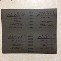 Giấy nhám RMC, độ nhám mịn P2000, chất liệu giấy, kích thước 230mmx280mm . Giấy nhám mịn có khả năng loại bỏ hoàn toàn những vết xước rất nhỏ để nâng cao giá trị thẩm mỹ cho sản phẩm và đáp ứng các yêu cầu khắt khe của thị trường. Với độ nhám #2000 giấy nhám mịn giúp việc chà nhám trở nên đơn giản, nhanh chóng và tiện lợi nhất