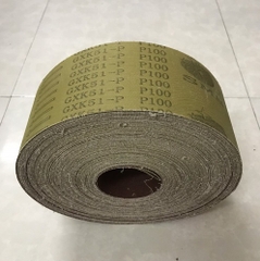 Vải nhám cuộn GXK51, độ nhám P100, nền vài cứng, hạt mài sắc, màu vàng thích hợp cho công việc mài mòn, hoàn thiện sản phẩm đối với tất cả các loại chất liệu gỗ, inox, thép, thép hợp kim, kim loại màu, hợp kim nhôm và mài đá.